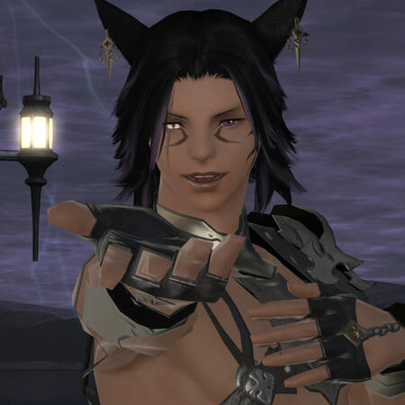 Backstory: He was born as the only Tia in his old tribe. Since a young age he was raised to become a hunter and work for the Tribe and his father, who always thought of him as less than a rat. His mother convinced him to keep Agares in the Tribe but as years passed by Agares started becoming a threat and a nightmare for his father. Wanting to keep his younger sister safe from their father's tribal abusive rules, he run away with her from their tribe across the desert. Having no knowledge of the outside world, they ended living in the streets of Ul'Dah until he got a job as errand boy and body guard for a Black Market Trader. He made the mistake of falling in love with Noah, the woman he was supossed to take care of, and soon after he got fired from the job and his sister disappeared under strange circumstances. Being left alone he seeked revenge going after Noah's youngest sister (Zoeh) and earned her trust and love just to make Noah go through hell for rejecting him and letting her husband get rid of her sister. Now he dreams of becoming the Nuhn of his own tribe with her mate Zoeh, and keeps trying to force Noah and Myoh to join them no matter what.